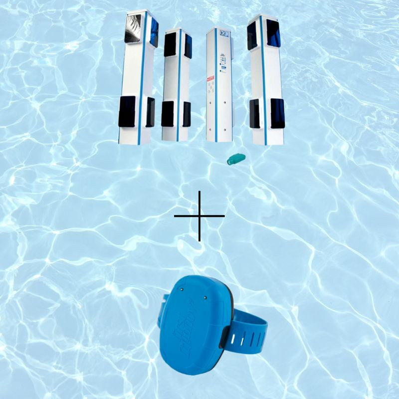 Ce système associe l'alarme périmétrique Prima Protect, qui crée une barrière infrarouge autour de votre piscine avec le bracelet alarme pour enfant Blueprotect, qui déclenche une alarme en cas de chute dans l'eau.