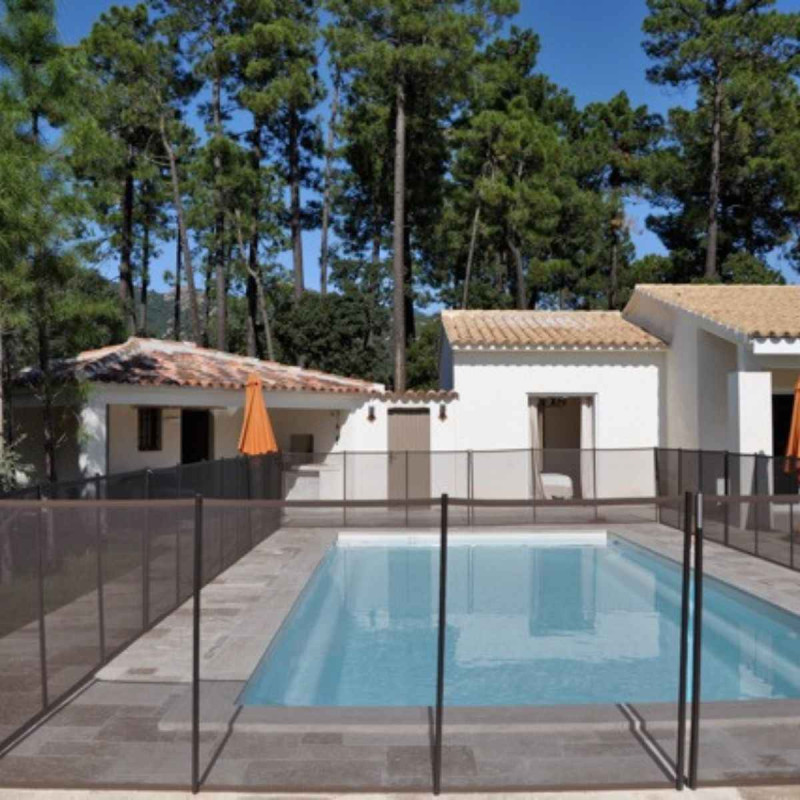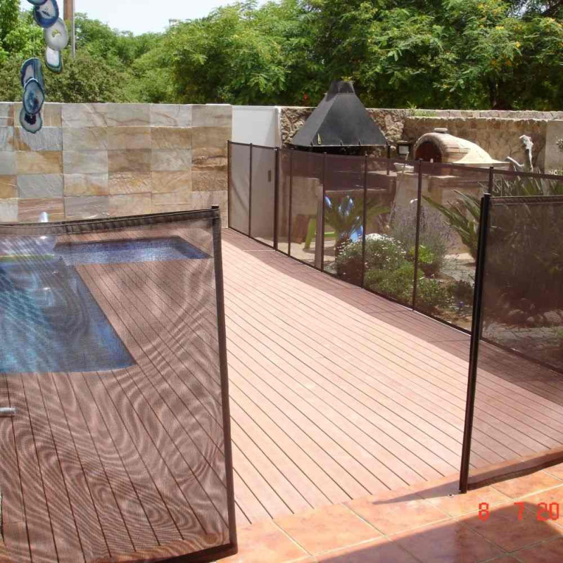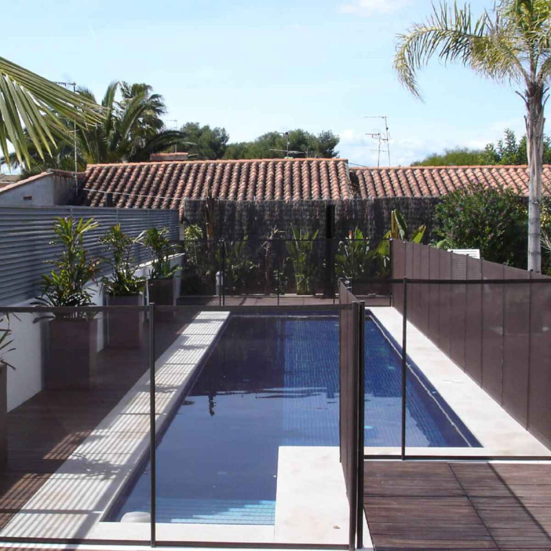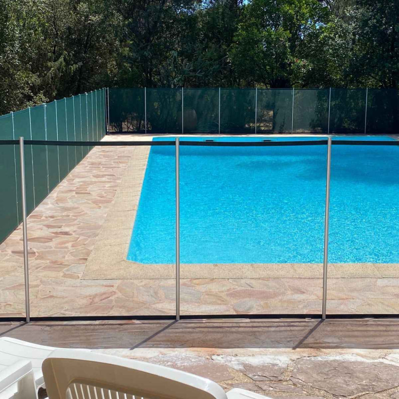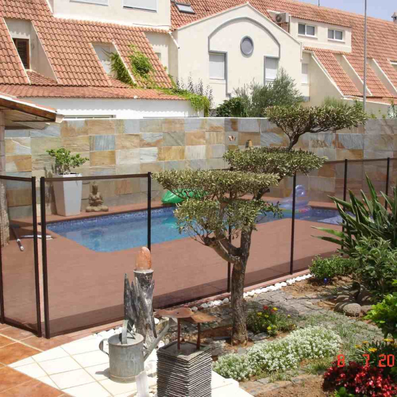 Pour s'adapter à tous les cas possibles de pose, cette barrière démontable pour piscine est disponible en sections de 1 mètre jusqu'à 15 mètres de long. Ces sections se composent d'un filet souple transparent ultra résistant (3 tonnes au m²) sur lequel sont fixés des piquets tous les mètres. Chaque section est retenue à une autre grâce à un loquet (ouverture sécurisée). Ce loquet est fourni pour chaque section commandée. Pour la pose de vos barrières démontables, il est nécessaire de percer des trous (diamètre 16 mm ou 30 mm selon le type de barrière choisi) dans lesquels viendront se placer les manchons, dans lesquels viennent ensuite se placer les piquets. L'ouverture de la barrière piscine démontable peut se faire soit à l'intersection de 2 sections, soit avec un portillon.