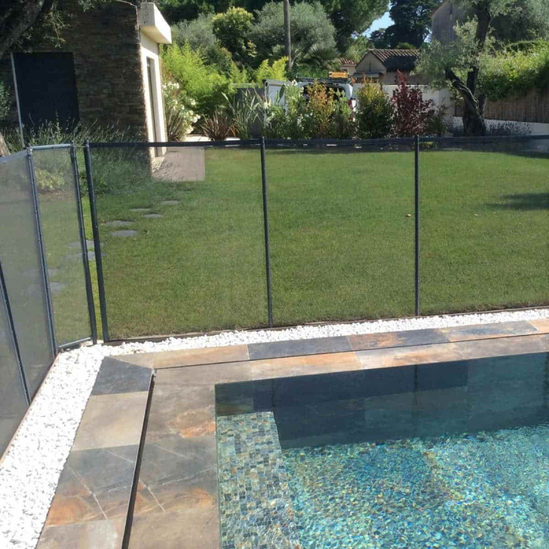 On peut facilement découper le filet de la barrière piscine Beethoven pour s'adapter au mieux à la configuration de votre piscine.